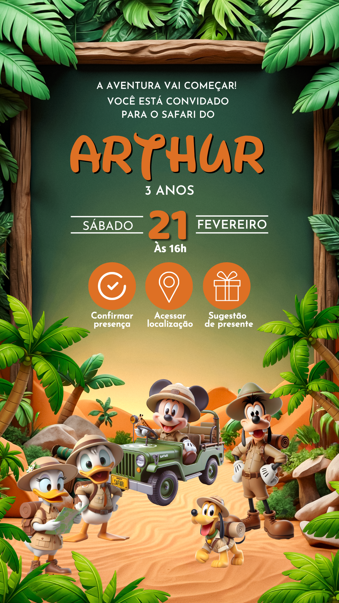 Um convite interativo mais elaborado, com identidade única e detalhes pensados especialmente para a sua festa.