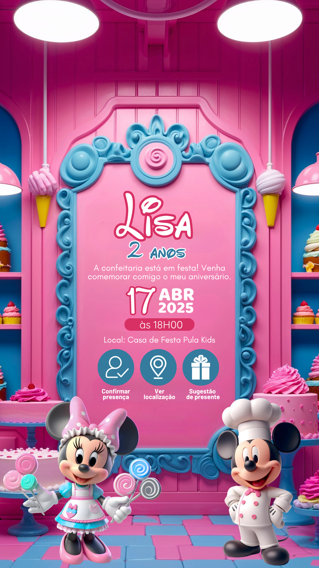 Convite em vídeo curto com música e elementos que ganham vida, encantando antes mesmo da festa.